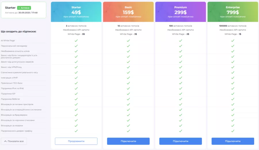 - Дозволяє лити трафік на сірі вертикалі через такі популярні рекламні мережі, як Facebook Ads, TikTok та інші.