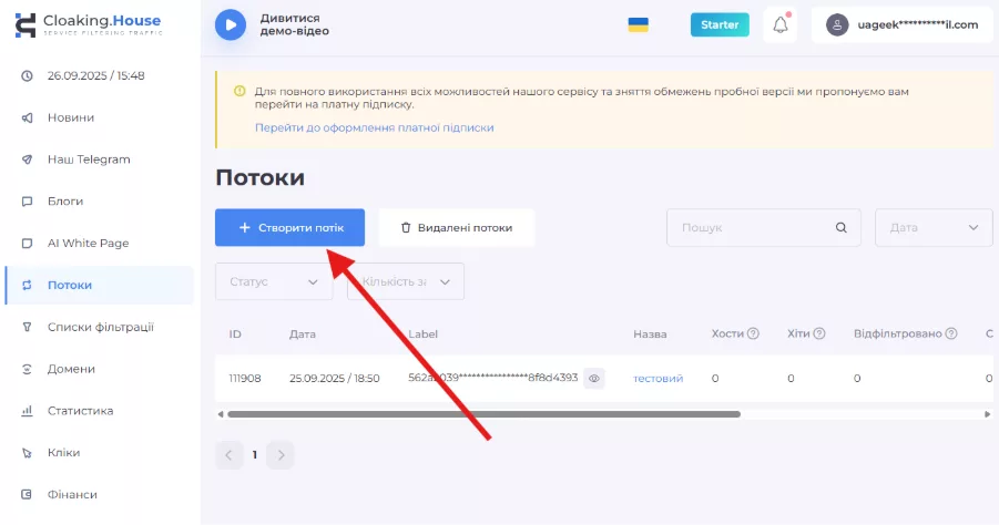Переходимо в розділ “Потоки”. Натискаємо кнопку “Створити потік”.