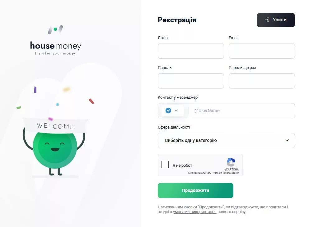 Тицяємо кнопку ”Реєстрація” на головній сторінці, після чого заповнюємо невеличку анкету. Треба вказати: