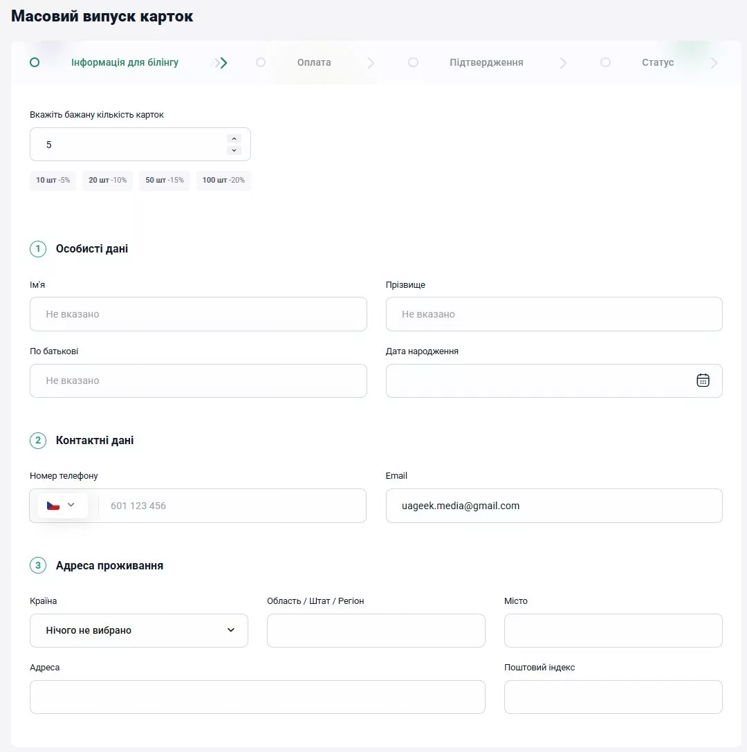 • Швидкість. Картки буквально через хвилину після випуску. Додаємо сюди ще й можливість одночасно випускати сотні карток, і стає зрозумілим, що інструмент підійде для проєктів будь-яких масштабів.